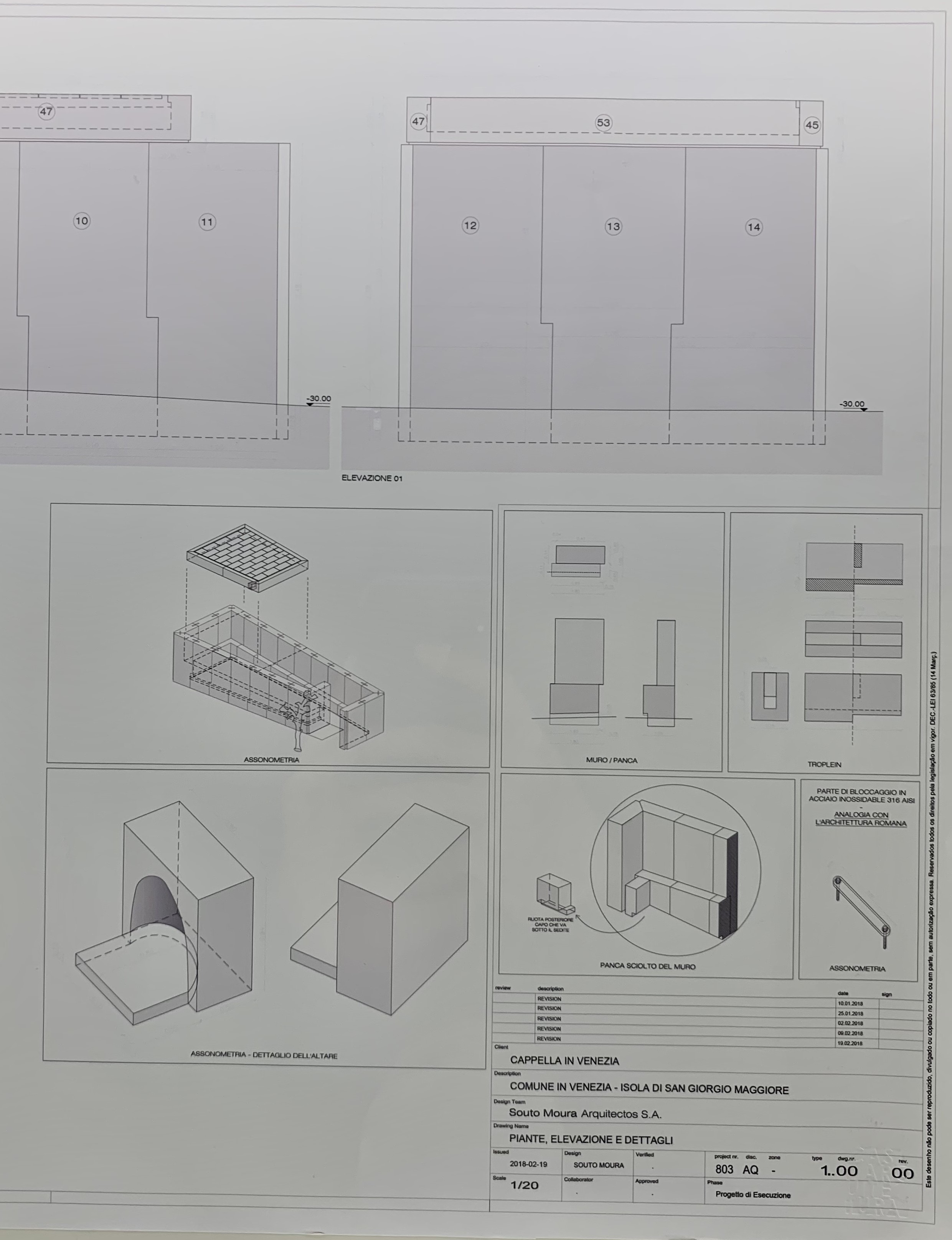 베니스 비엔날레 국제건축 전에 설계된 '경배의 공간' 중 하나이다. 크지 않은 실내에서 정적인 느낌을 부여받고, 정면으로 빛이 새어 들어오며 보이는 울창한 숲은 가히 일품인 것 같다. 이러한 요소들로 인해서 경건한 분위기를 연출할 수 있을 것으로 보인다.