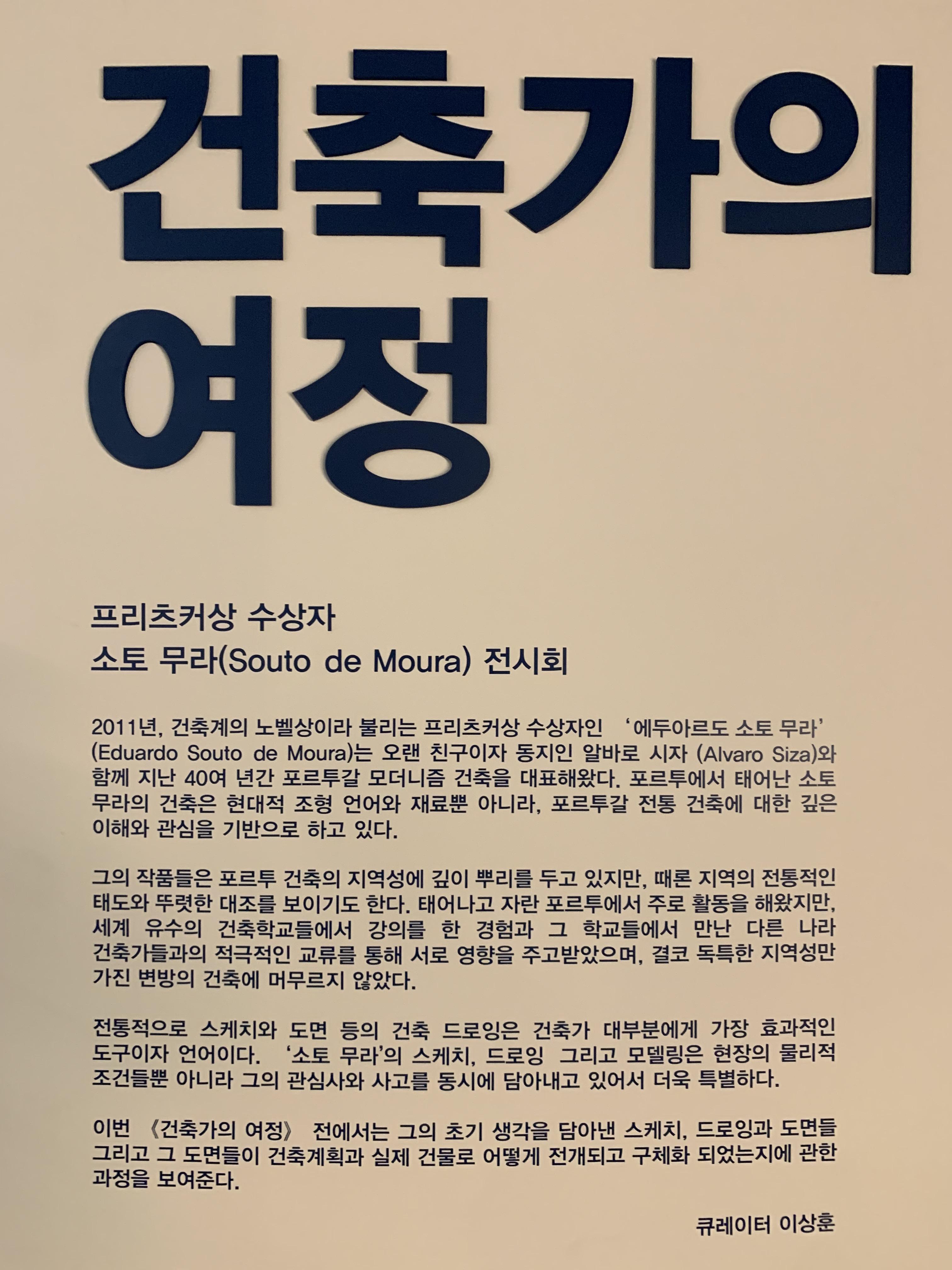 2011년, 건축계의 노벨상이라 불리는 프리츠커상 수상자인 '소토 무라(Souto de Moura)'의 전시가 서울도시건축전시관에서 열렸다. 평소 소토 무라의 관한 건축은 몰랐다고 봐도 무방했다. 하지만 프리츠커 수상자의 작품과 프로세스를 볼 수 있는 기회는 좋은 경험이기에 전시를 관람하러 가게 되었다.