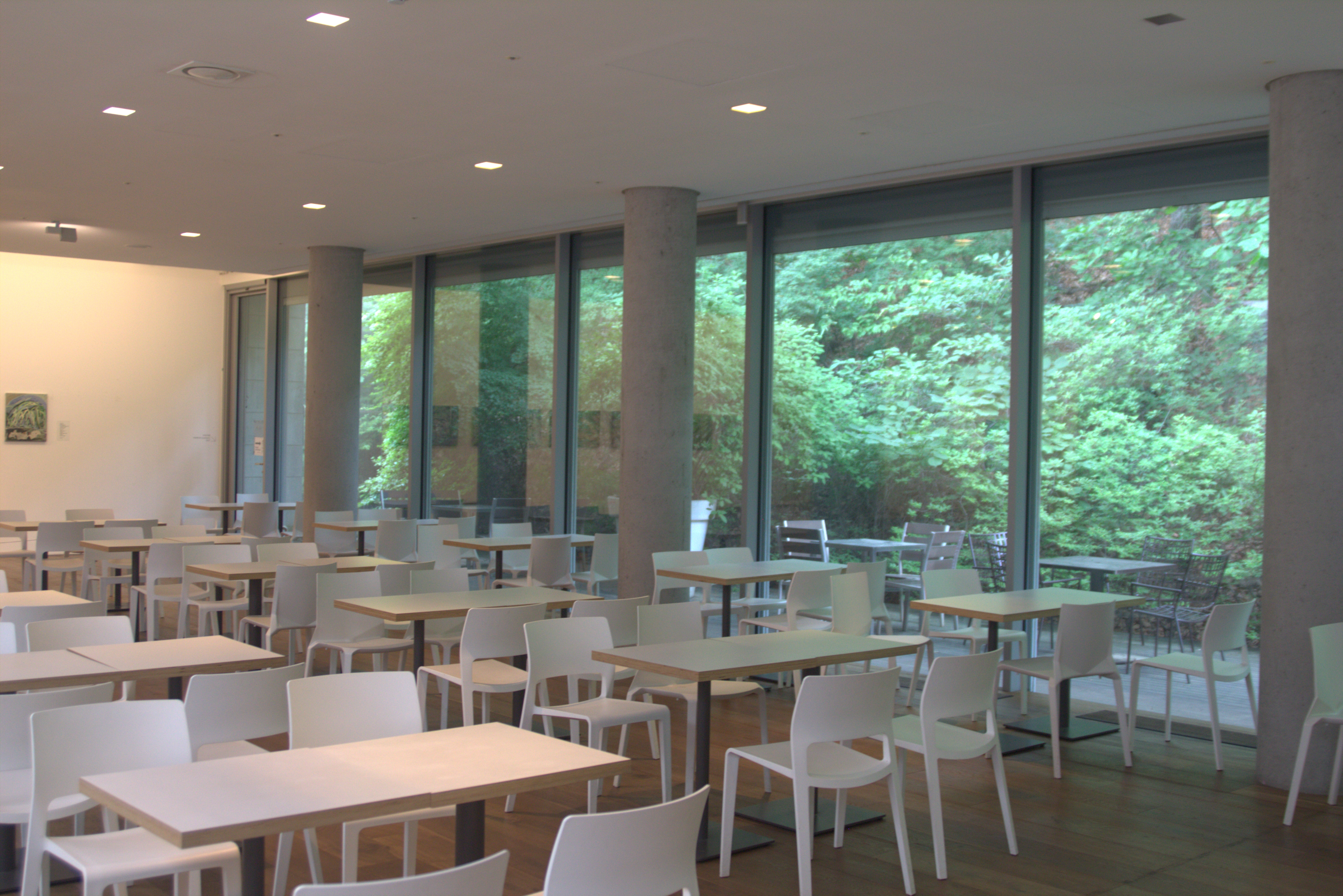 지하에 있는 전시를 다보고 동선을 따라 다시 1층으로 올라오면 자연과 공존하는 카페가 있다.