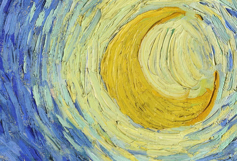 ![]() 별이 빛나는 밤 (부분 확대) - 빛의 반사 작용과 거친 물감으로 인한 촉감적인 영역으로도 그림이 인지됨 |