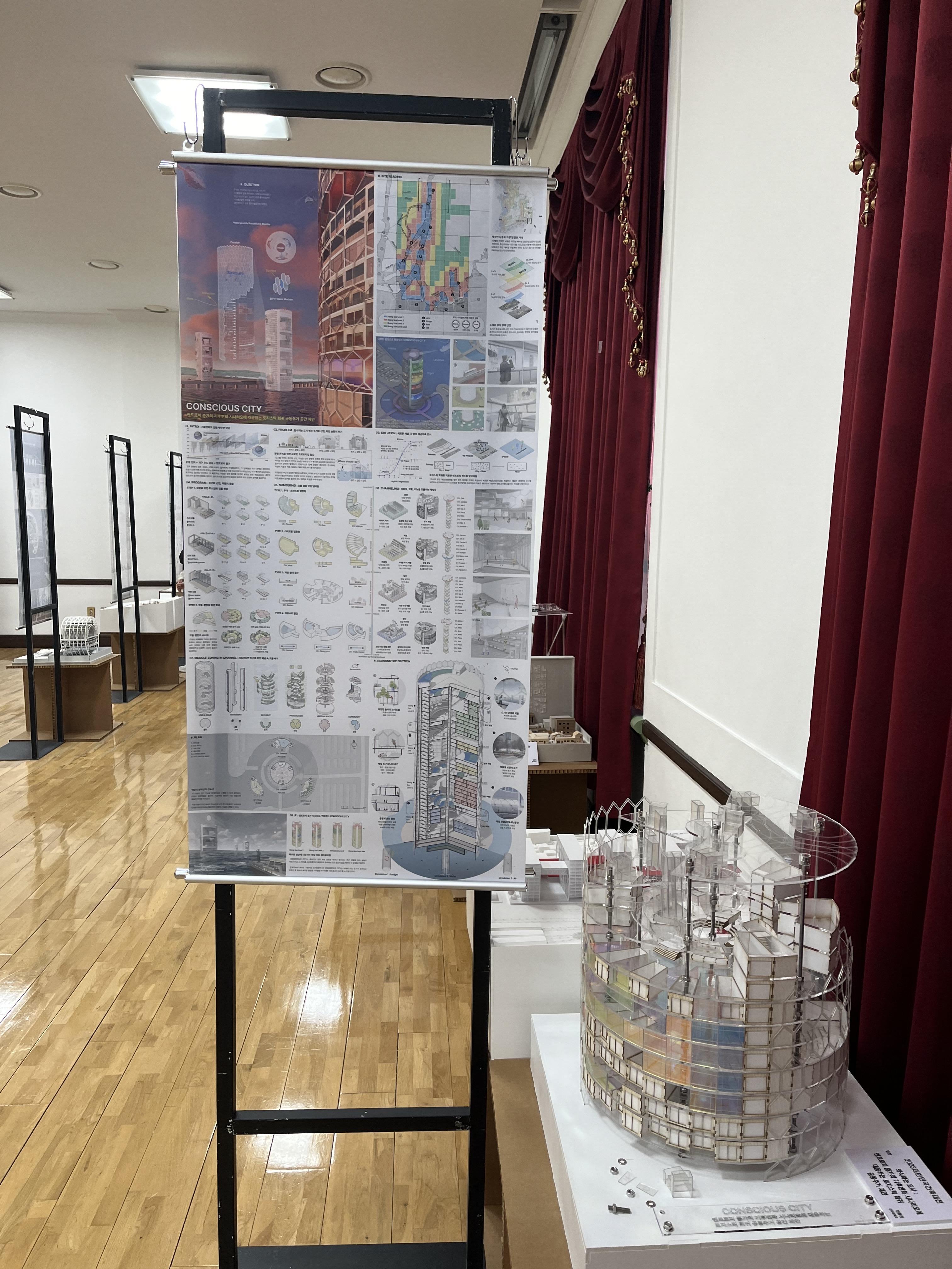 그러므로 다음 전시를 보러 가자. 다음 전시는 제42회 대한민국건축대전 국제 일반 공모전 수상작들이다.